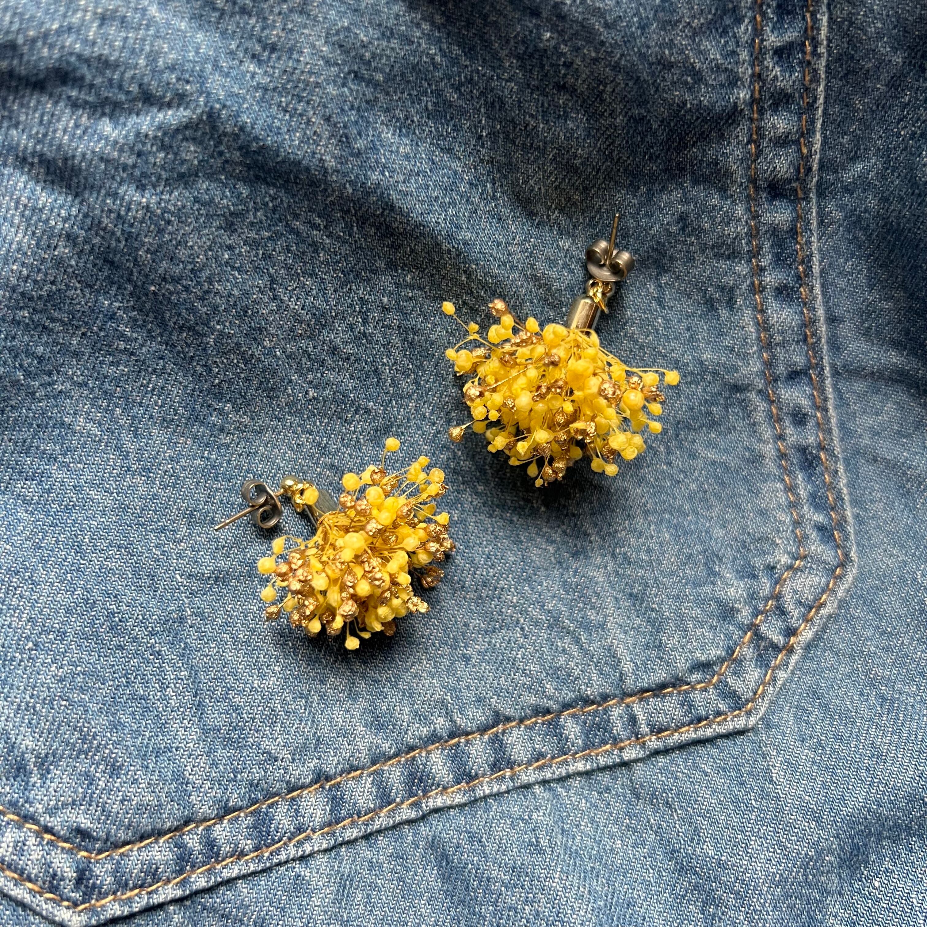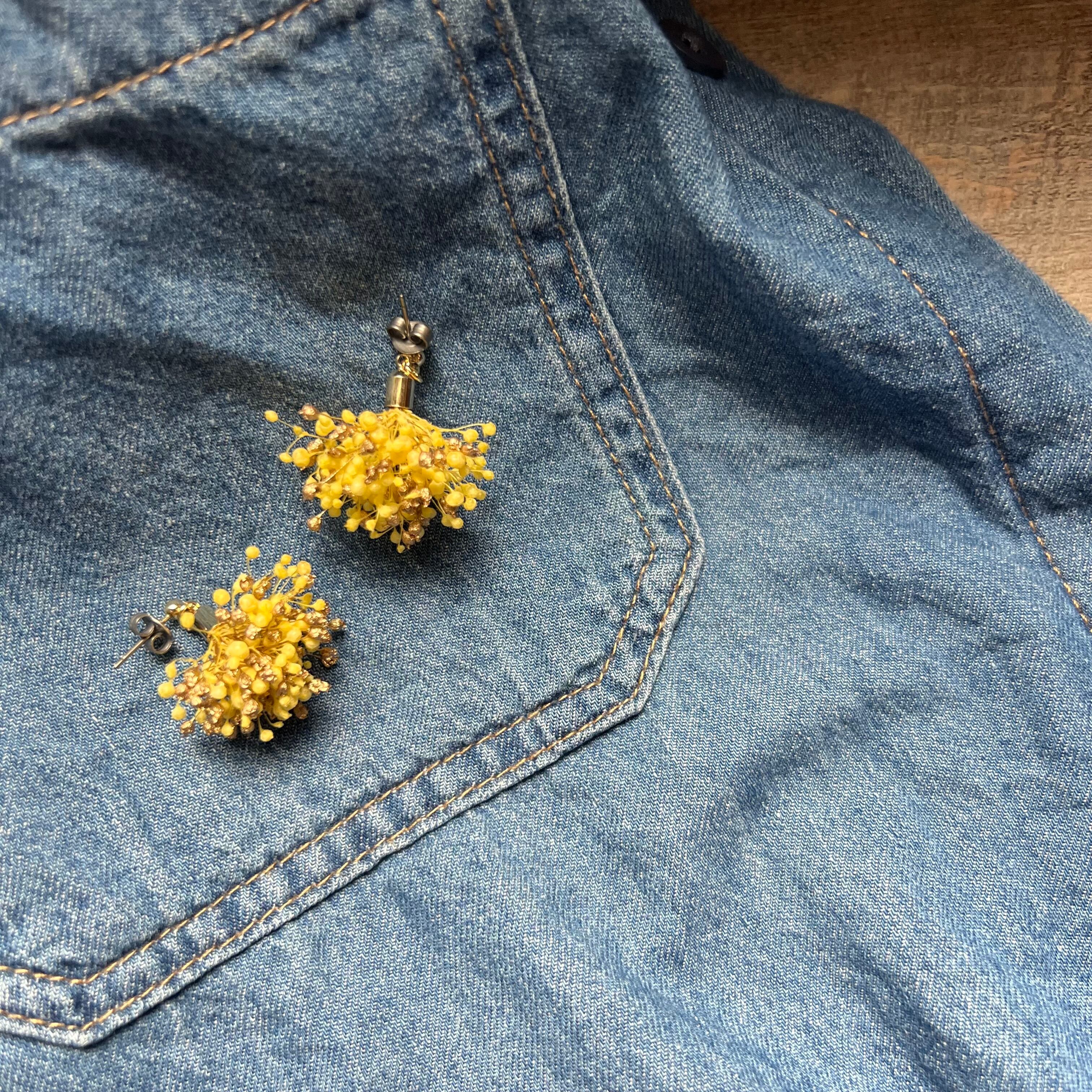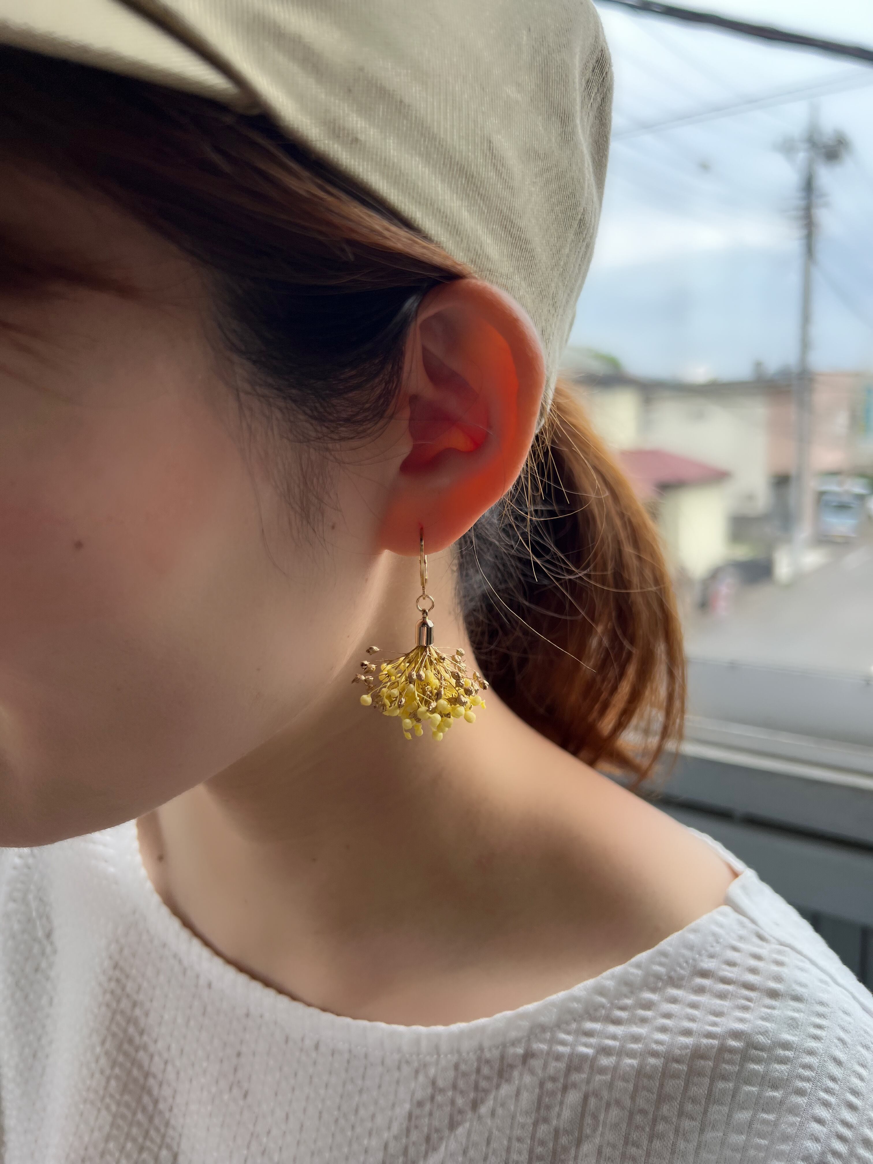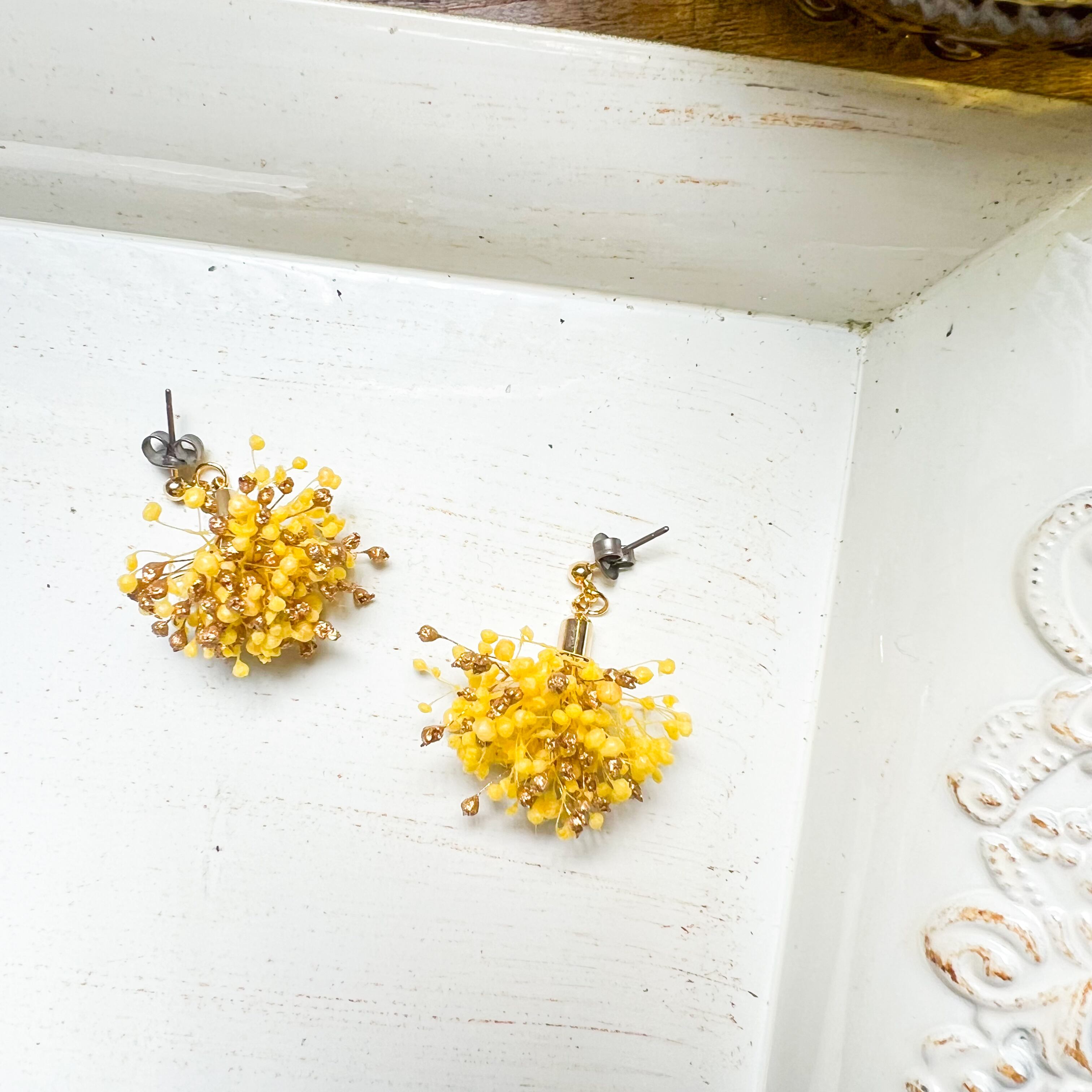 かすみ草のプリザーブドフラワーを使ったピアスです