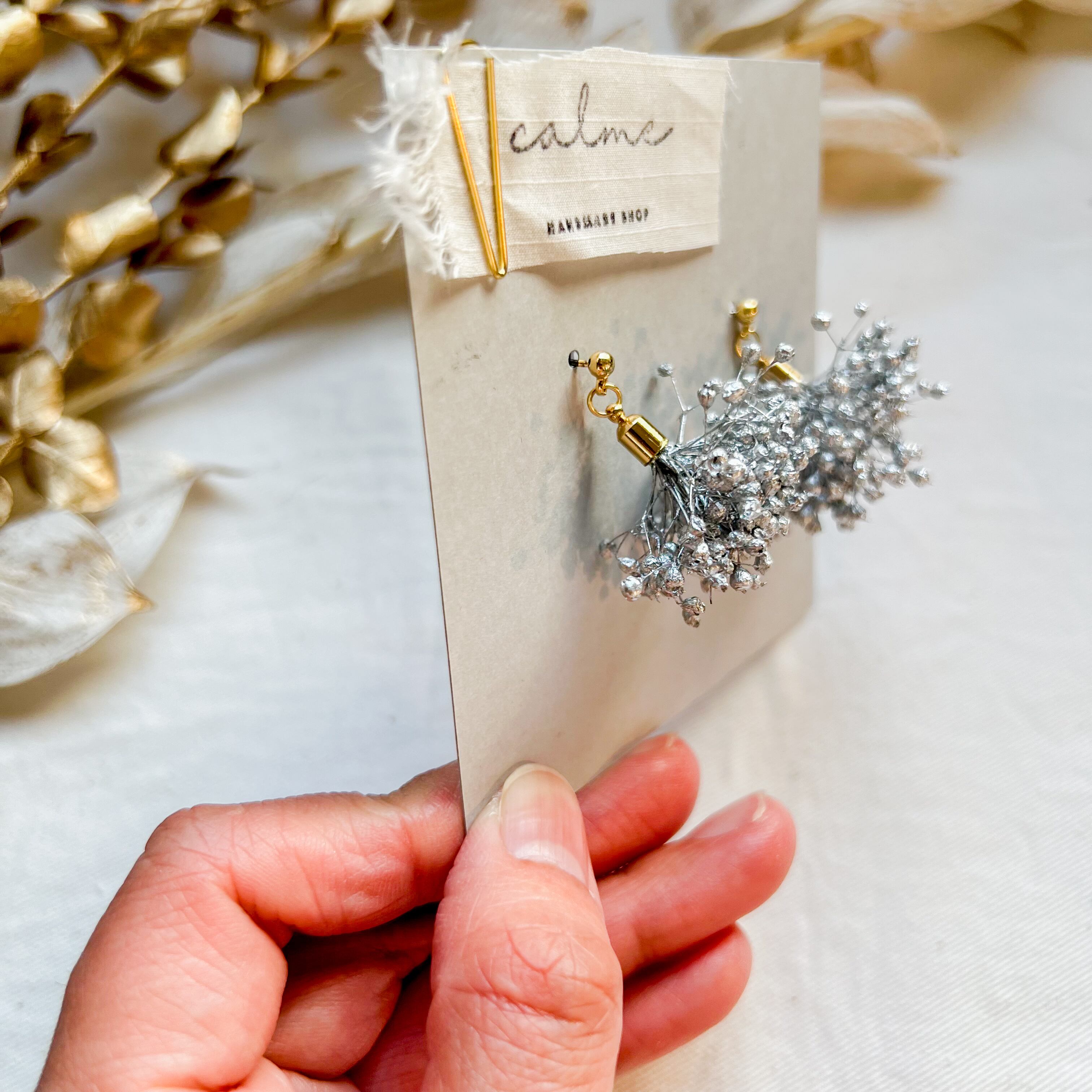 かすみ草のピアス シルバー 存在感抜群 Lサイズ 本物のお花のアクセサリー