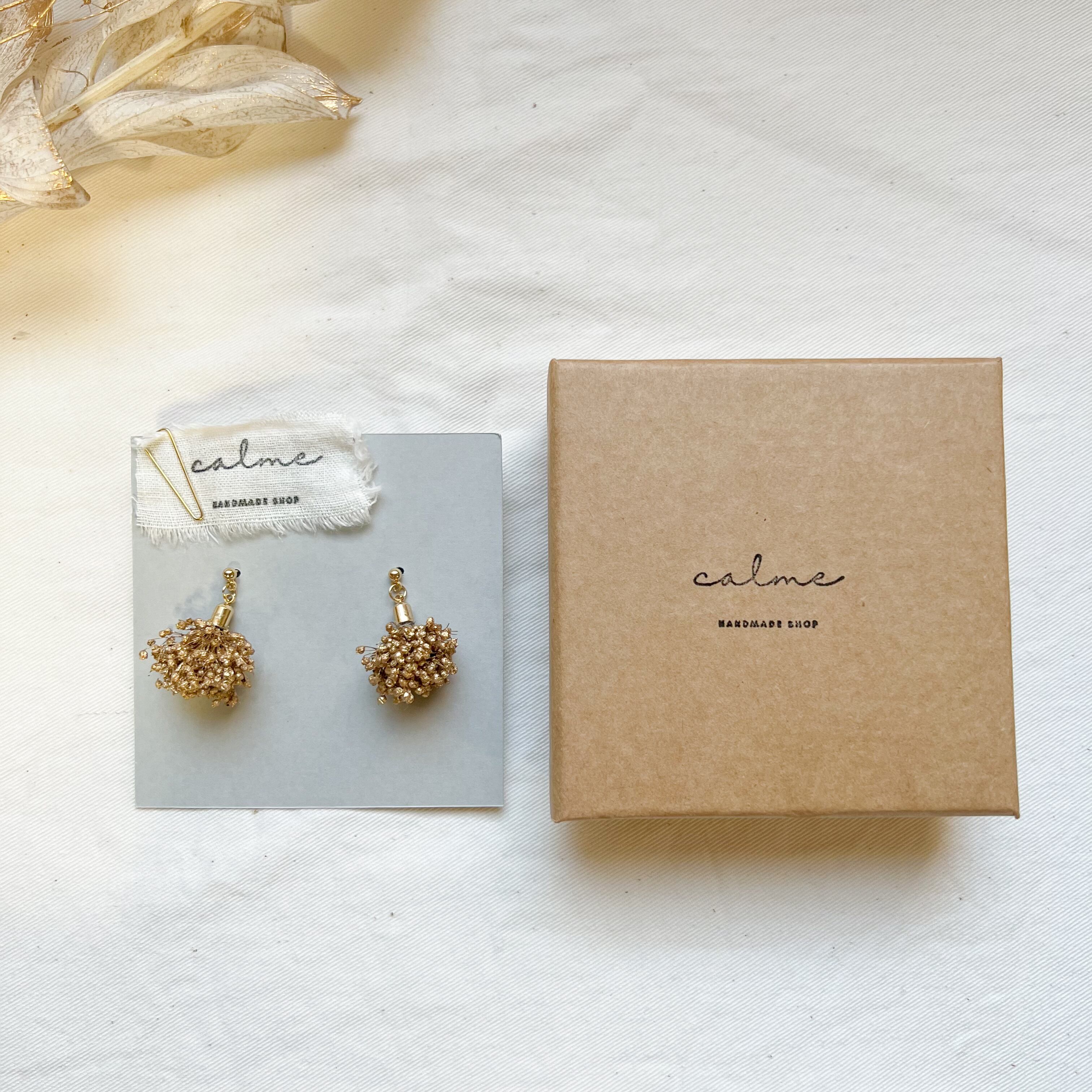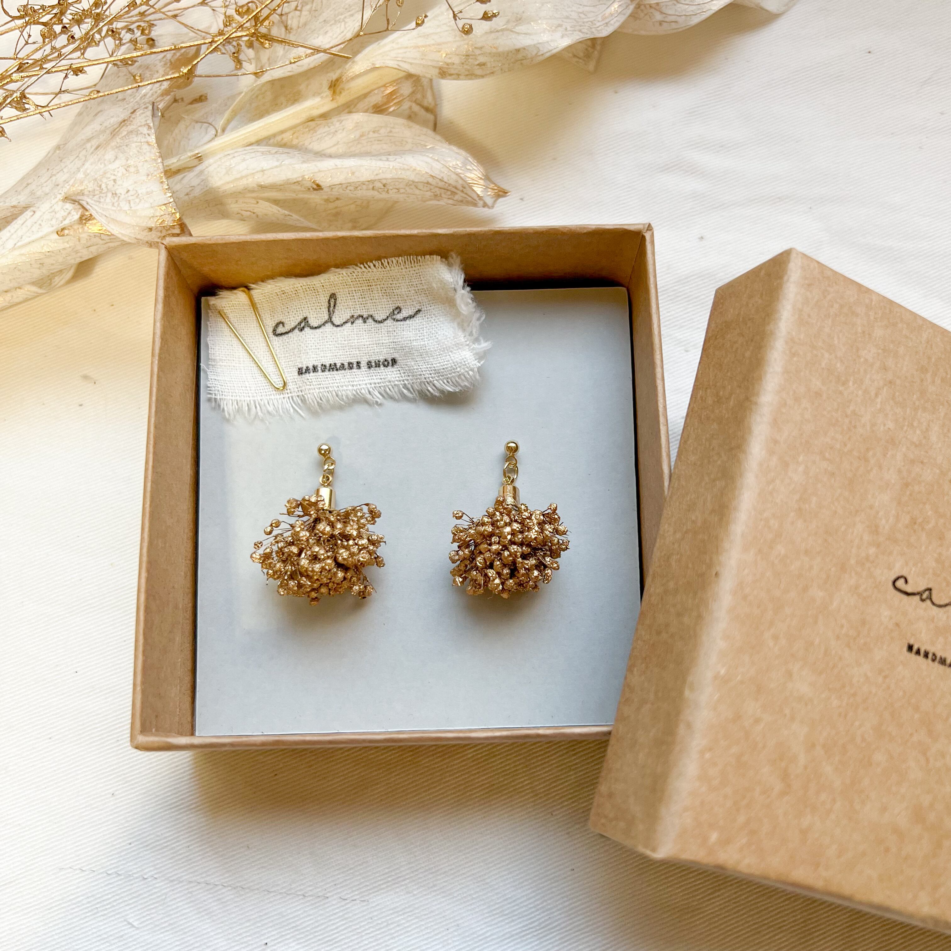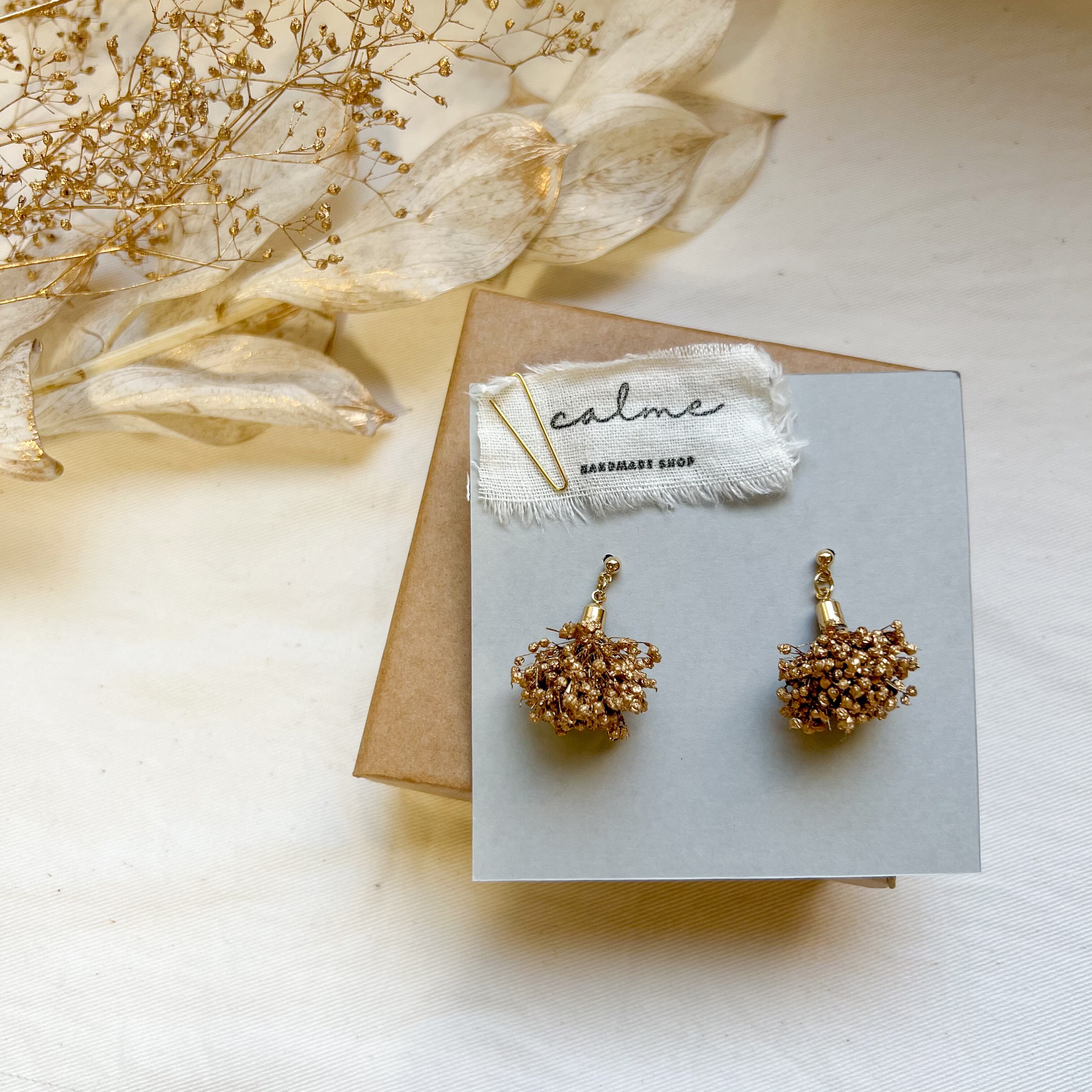 かすみ草のプリザーブドフラワーを使ったピアスです
